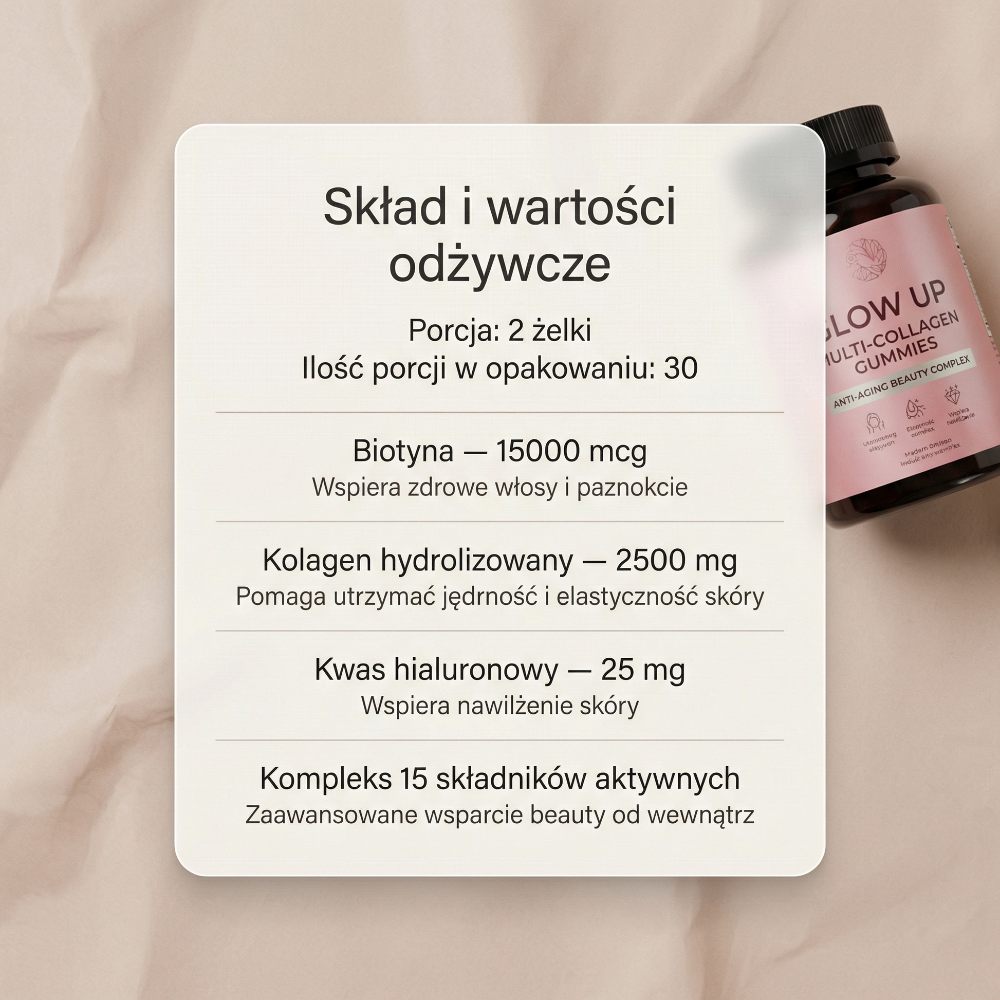 | Dawka kolagenu | 2500 mg | Niższa lub brak danych |